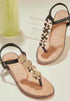 Smart sort læder sandal med spænde lukning og guld skiver som pynt.